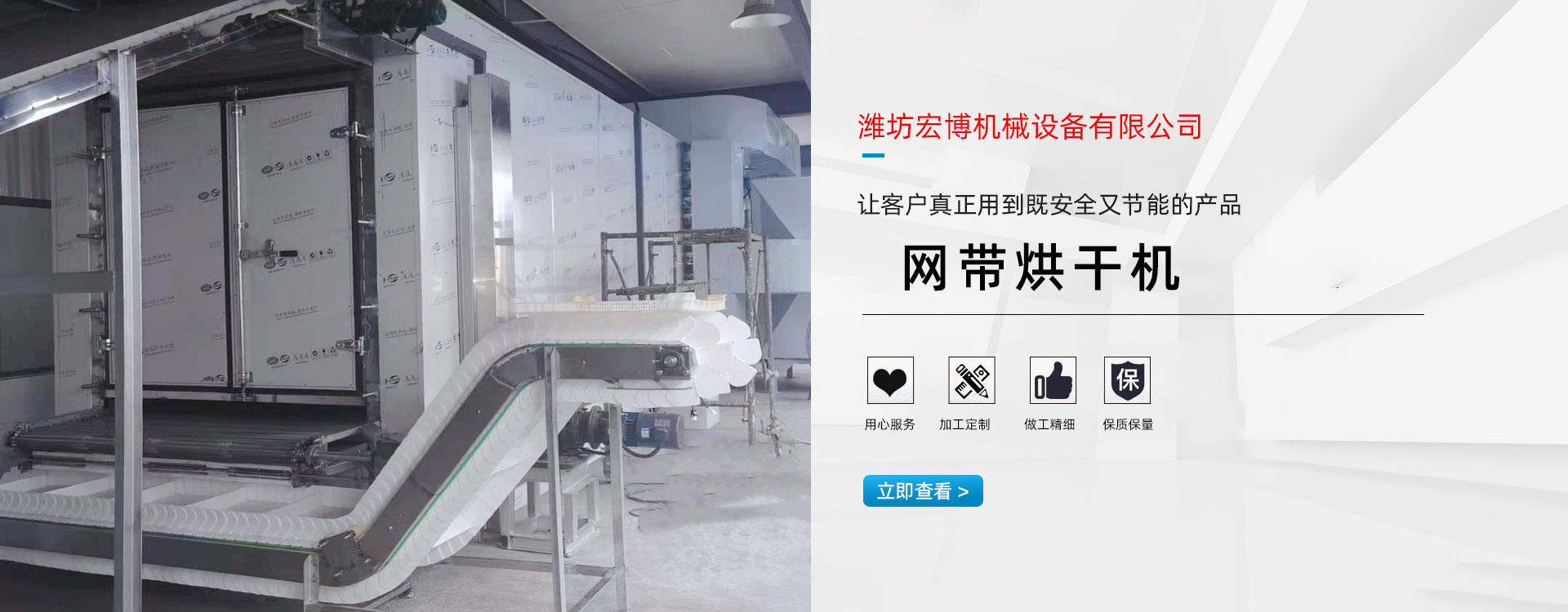 宏博公司主要產(chǎn)品有:網(wǎng)帶烘干機、食品烘干機、滾筒烘干機、隧道窯、烘干箱、燃氣熱風爐、高大車間供暖設備、礦用防爆電加熱器等。